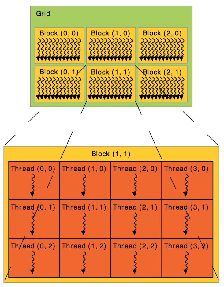 쉽게 말해 grid는 하나의 CUDA 커널마다 하나씩 할당되는 block들의 집합,